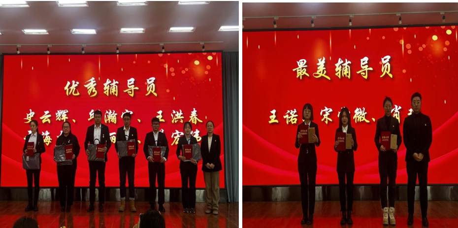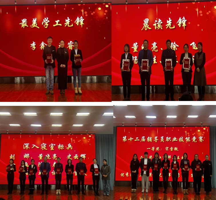 郭慧莹宣读《关于表彰2024年“优秀辅导员”“最美辅导员”“最美学工先锋”的决定》,与会领导为获得“优秀辅导员”“最美辅导员”“最美学工先锋”“深入寝室标兵”“晨读先锋”的老师颁发证书。