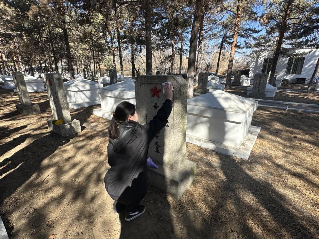 为表达对英烈的深切缅怀与尊崇,全体师生认真清扫英烈墓碑。大家细心擦拭墓碑、清理周边杂草与杂物,以实际行动守护英烈安息之地,感悟革命精神,厚植敬畏之心与爱国情怀。