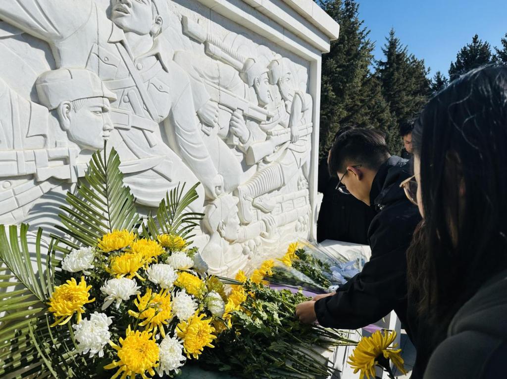随后,师生代表向纪念碑敬献花篮,以庄重的礼仪致敬为国家和人民英勇献身的革命先辈,感念先烈用生命换来的和平岁月与幸福生活。