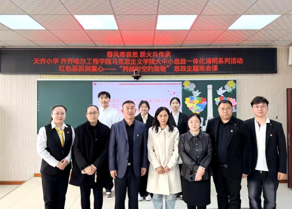 为深入贯彻落实立德树人根本任务,扎实推进大中小学思政课一体化建设走深走实,3月30日,学校马克思主义学院走进天齐小学,开展“春风寄哀思,薪火共传承”主题教育活动。马克思主义学院院长赵婷婷,铁锋区教师进修学校德育部副主任王微,天齐小学相关校领导及我校师生代表共同参加本次活动。