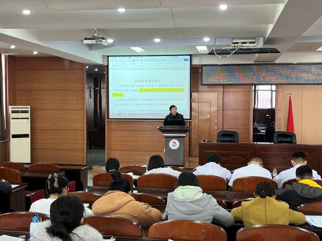 评建办主任蒋春艳以《做好阶段性评建总结,写好自评报告初稿》为题,介绍了2023年评建工作开展的主要举措、取得的主要成效以及在督办过程中发现的尚需加强之处,并布置了年末主要评建任务。