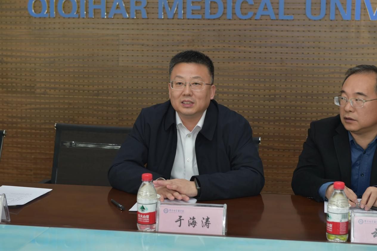 齐齐哈尔医学院副校长于海涛会见学校考察团一行并主持召开座谈交流会,高教研究与教学质量评估中心、教务处、人事处等部门干部参加座谈交流。