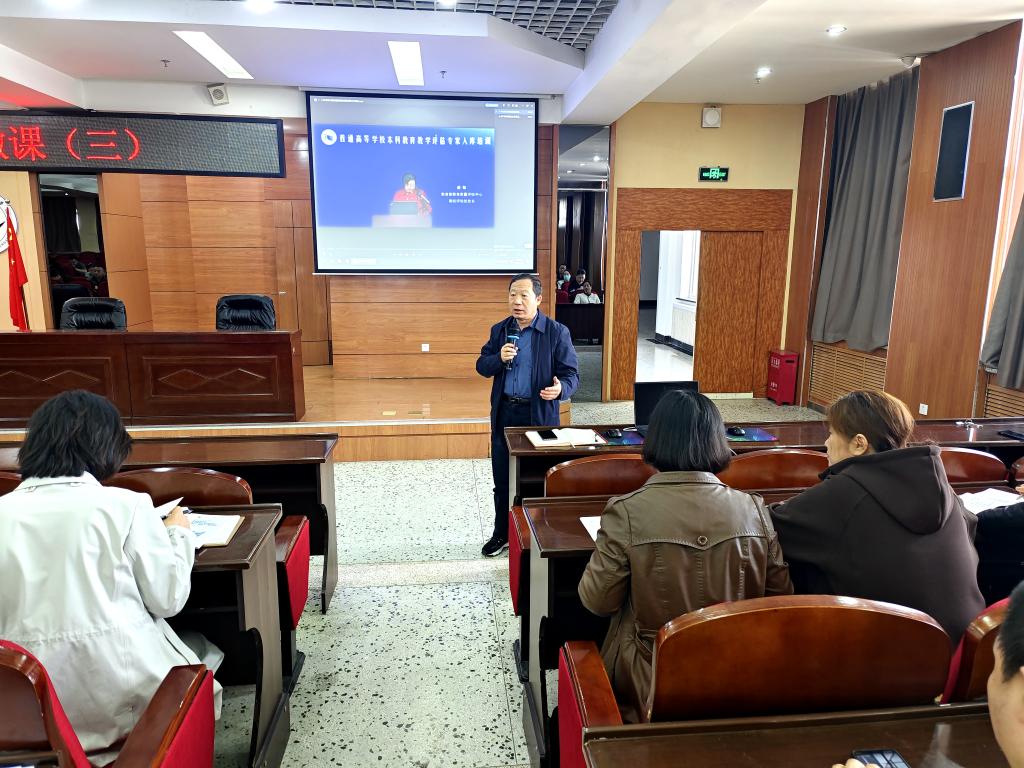 4月20日上午,学校在图书馆601报告厅开展第三期专题学习审核评估专家培训系列微课,以视频的形式聆听了西安电子科技大学副校长王泉教授、上海交通大学原副教务长吴静怡教授作的专题讲座。院长曹然彬主持会议并讲话。