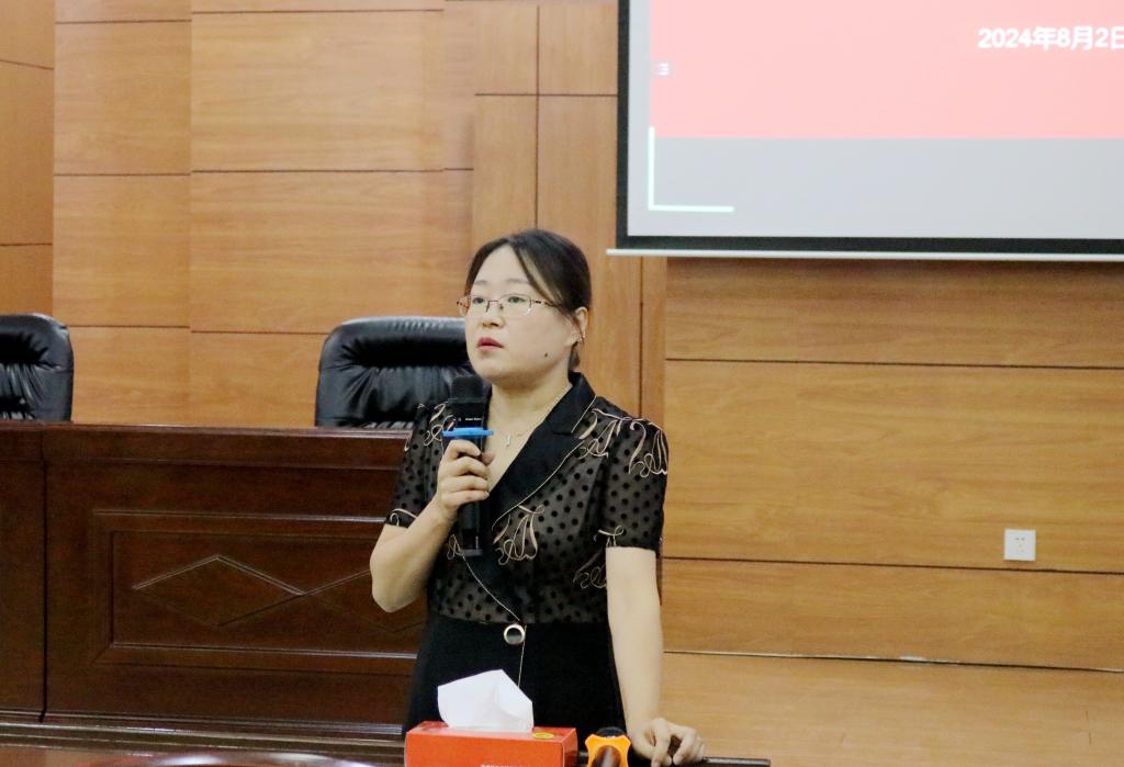 蒋春艳以“扎实做好凝练总结,全面筹备评估诊断”为题,对评估诊断筹备工作以及自评报告修订工作进行介绍。针对《2024年审核评估评建工作计划的通知》要求,对全面开展迎评促建工作四个阶段的时间节点及各部门的工作内容与时限作了说明,并强调了自评报告存在的共性问题、修订方法和注意事项。