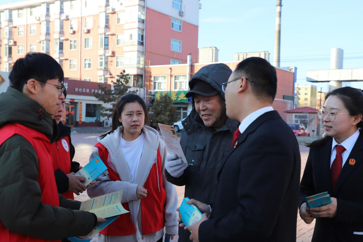 在第114个“三八”国际妇女节来临之际,为强化普法宣传教育力度,进一步提升在校学生的依法维权意识,积极营造关心关爱妇女、保障妇女合法权益的和谐氛围。3月7日下午,校团委联合齐齐哈尔市中级人民法院深入南航街道新联社区新时代文明实践站开展“青年志愿·普法有我”志愿服务活动。