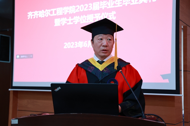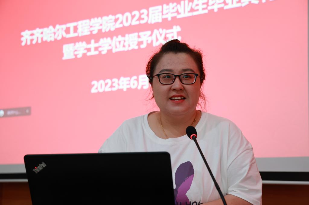 学校教务长张静宣读齐齐哈尔工程学院2023届学士学位授予文件。
