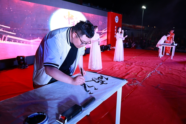 齐齐哈尔朗诵协会的张超老师满怀深情地朗诵了戴凤彬老师的诗歌《易湖礼赞》,以易湖为素材,回顾31年创业历程,诠释学校丰富育人内涵,表达了致敬创业者和自信迈向未来的情感,书法爱好者协会两位同学现场书写晚会主题:破浪新生,赢得了现场热烈掌声。