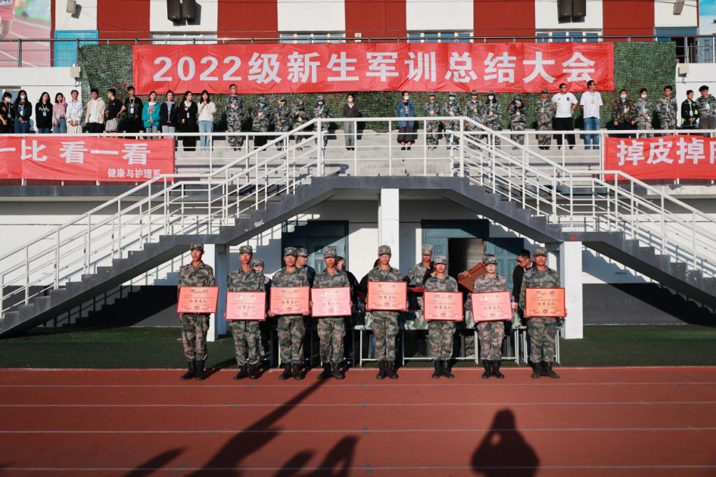 张振笋副院长为获得优秀教官标兵的同学颁奖;郭明敬副处长为优秀教官代表颁奖;各系学生工作负责人为2022级新生获奖代表颁奖。新生和教官们表演了精彩的文艺节目。
