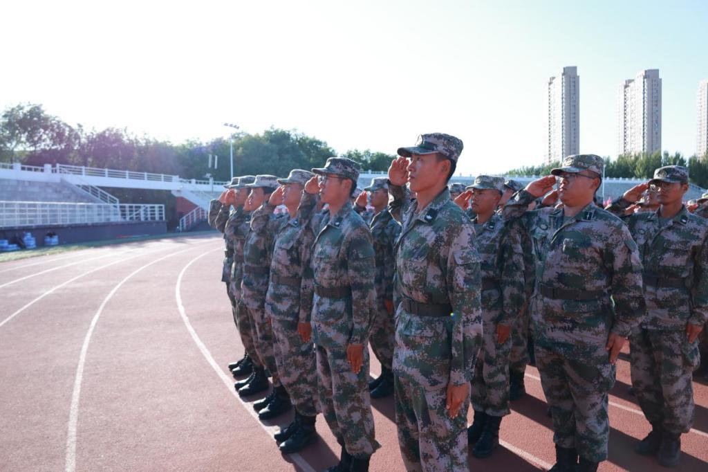大会伊始,全体起立,升国旗、奏唱国歌。40名教官组成的国旗护卫队迈着坚定有力的步伐护送国旗,伴随着雄壮的《中华人民共和国国歌》,鲜艳的五星红旗冉冉升起。
