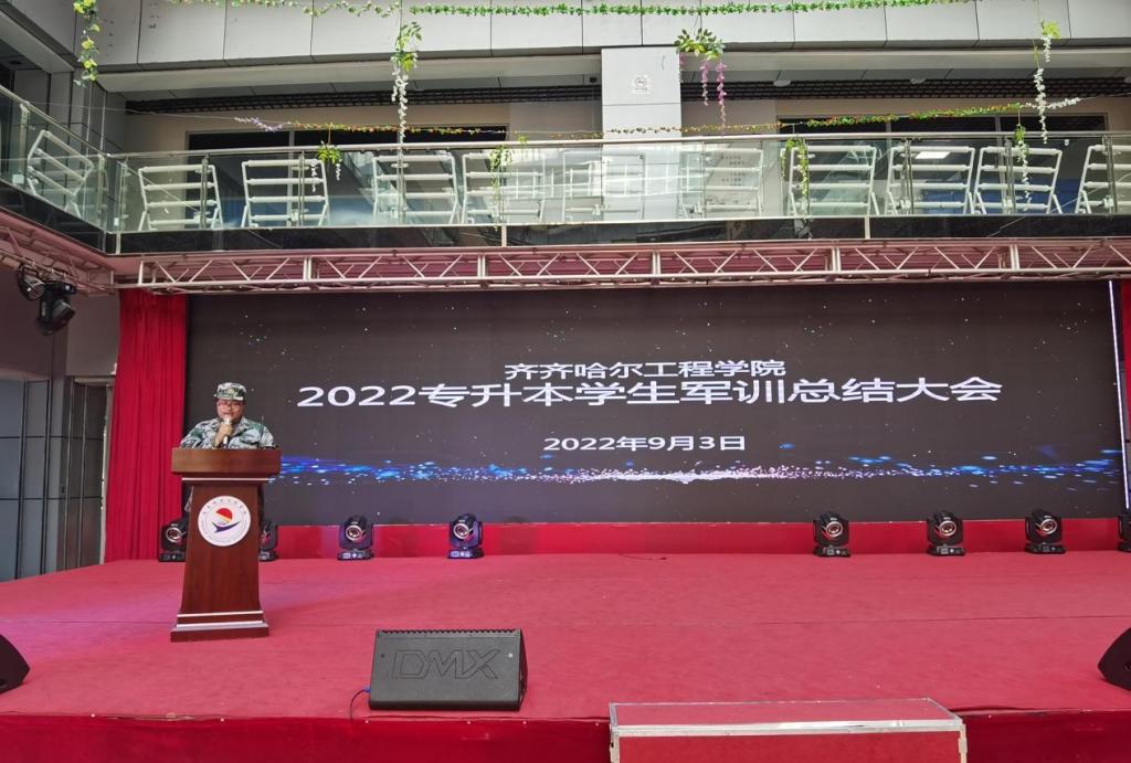 9月3日,2022级专升本学生军训总结大会在学生活动中心举行,副院长张振笋出席,各系学生工作副主任、新生辅导员、学长、军训教官以及2022级专升本全体学生参加。