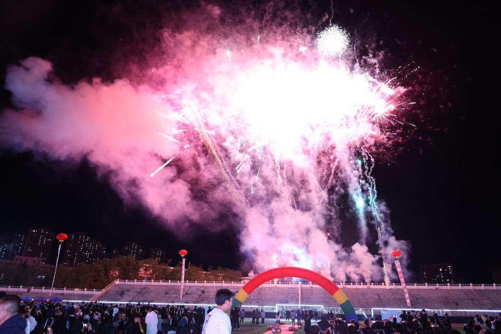 “上饺子喽”,伴随欢快的音乐,一碗碗包含着学弟学妹浓浓的祝福的热气腾腾的饺子送到在场每一位毕业生手里,夜空里礼花绽放,映照着每一张幸福的笑脸。
