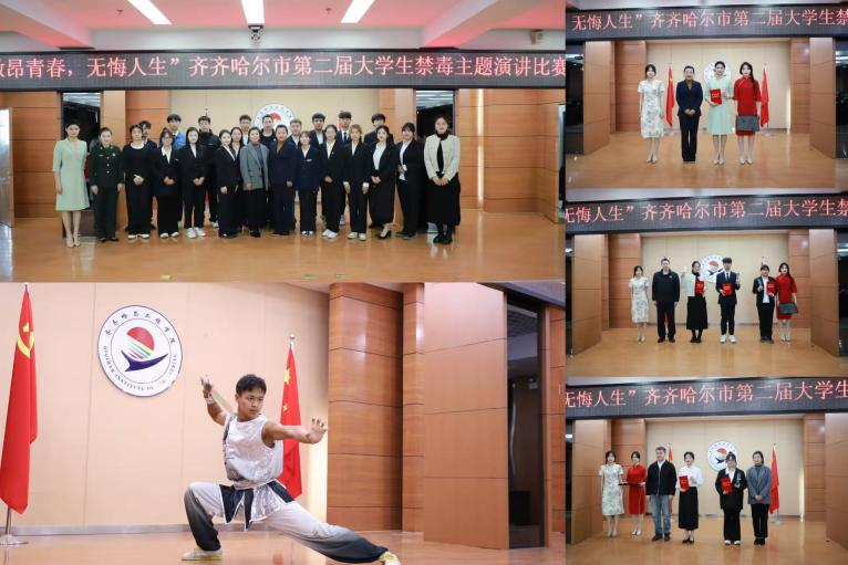 现场评委们根据演讲内容、语言表达、形象风度等多个方面进行了严格评审。经过激烈角逐,最终由齐齐哈尔大学罗轶文同学斩获一等奖,我校学子智能建造242班陈璐、护理学(专升本二年制)246班 陈宇杉分获二、三等奖的好成绩,并顺利代表我市进入省赛,与省内其他高校学子进一步交流角逐。同时,齐齐哈尔市禁毒委员会办公室授予我校“优秀组织奖”荣誉称号。