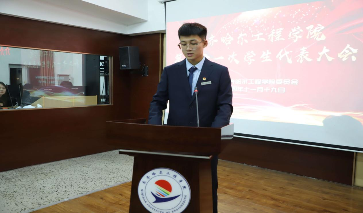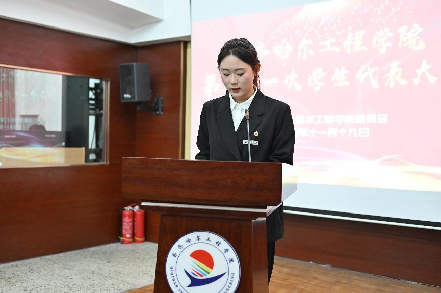 学生会权益部部长范云天宣读了《齐齐哈尔工程学院第二十一次学生代表大会议程》。