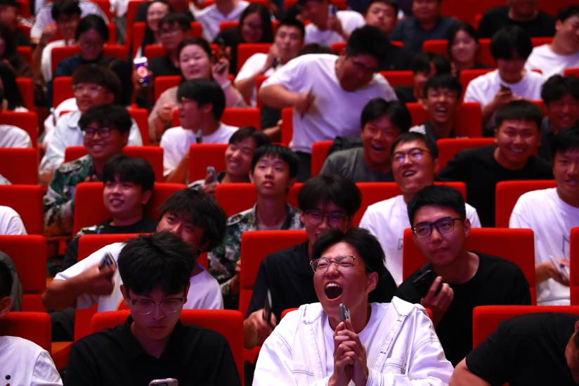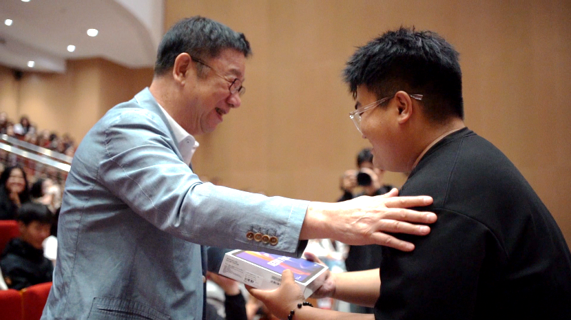 随着互动环节的推进,近千个手机屏幕在会场各处同时亮起,同学们奋力摇动手机,闪烁的亮光在不同座位此起彼伏。每一次抽奖结果的揭晓,都伴随着热烈的欢呼、掌声与笑声,将现场气氛一次次推向高潮。