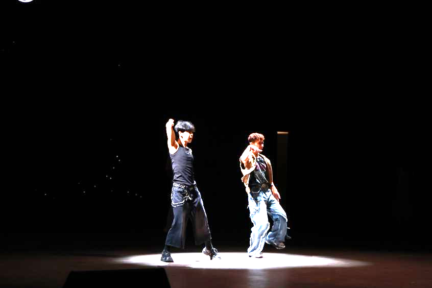 晚会第二篇章以“韶华逐光·青春共行”为主题,精彩节目接连上演。大学生艺术团声乐分团以温暖歌声演绎《陪我长大》,诠释青春路上的陪伴与成长;舞蹈团带来民族舞《茶花开了》,用灵动舞姿绽放如花般的青春年华;器乐分团奏响经典《梁祝》,以悠扬旋律再现这段动人爱情传奇;随后,舞蹈分团献上活力四射的《街舞串烧》,尽显现代街舞的潮流魅力与青春激情;最终,器乐分团以流行乐队形式演绎《极恶都市》,用强劲节奏将全场气氛推向最高潮。