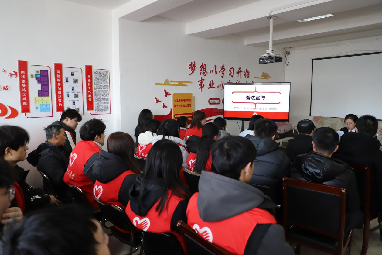 为深入弘扬雷锋精神,推动法治宣传走进基层、服务群众,3月5日,学校团委联合齐齐哈尔市中级人民法院走进社区,开展普法宣传志愿服务活动。