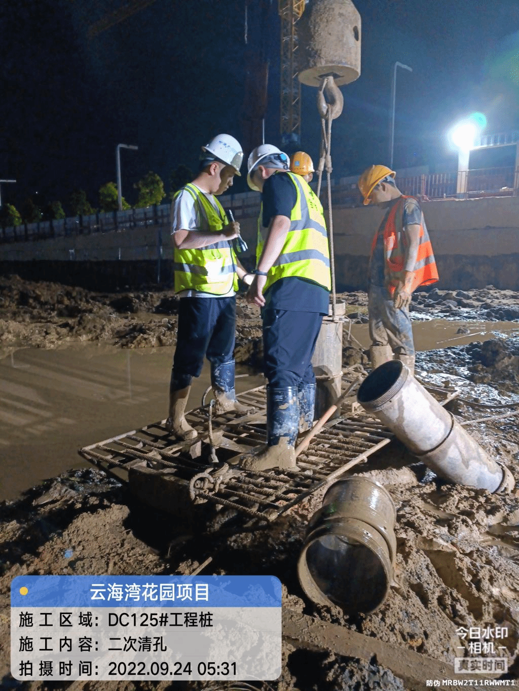 左一董建华,在云海湾花园项目工程现场