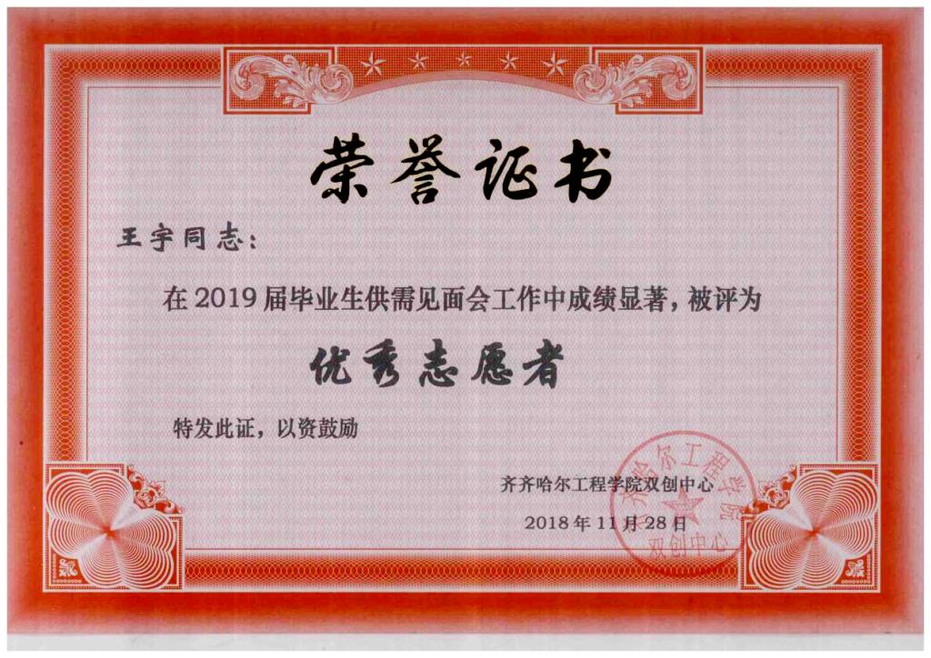“毕业已满三年,但我仍然很怀念在校的时光。”这是王宇经常挂在嘴边的话。2016年,王宇步入齐齐哈尔工程学院,开启了他的大学生涯。入学后,王宇努力学习专业知识,不断培养专业技能,他的专业成绩在学校始终名列前茅。