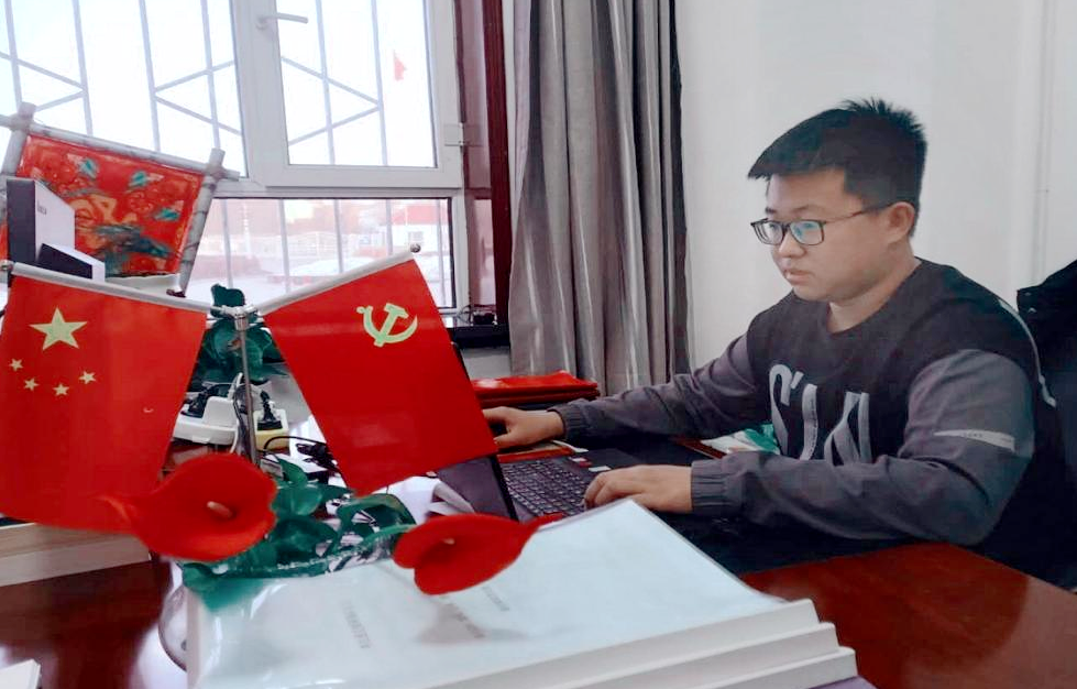 服务期间,他时常提及并感谢自己的母校。在校四年的学习中,他不仅专业基础扎实,志愿服务也从未落下。这为他更好地开展基层服务工作奠定了基础。因为语言不通是工作开展的最大障碍,他自创了一套沟通方法,了解群众所想所需,帮助群众解决生活中的实际困难。在一次入户走访中,一位阿姨因社保系统问题一直交不上社保款,这使得她很焦急。在得知情况后,王宇一边安抚阿姨,一边联系相关部门,积极去解决问题。他说:“作为一名基层工作者,应具备为群众服务的思想觉悟,群众的事都是大事,自己的事都是小事。”