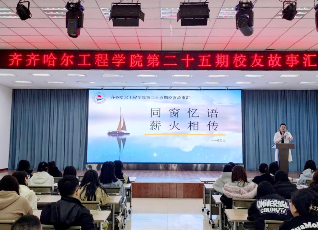 4月13日,学校在二号教学区2508会议室举办第二十五期校友故事汇。建筑管理工程系邀请2013届优秀毕业生董思全以“同窗忆语、薪火相传”为题,为大三、大四180余名学生分享职业经历。