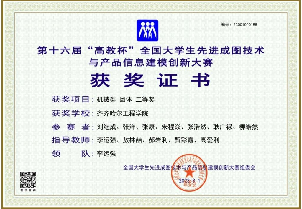 朱程焱更善于在竞赛中锤炼本领。他积极投身各类专业赛事,在“第十六届高教杯全国大学生先进成图技术与产品信息建模创新大赛”中,一举拿下团体二等奖、先进成图技术赛道三等奖、轻量化设计赛道团队三等奖;在“第十四届黑龙江省‘龙江杯’先进成图技术与产品信息建模创新大赛”中斩获三等奖;在“黑龙江省大学生创新创业训练计划项目”中立项。这些竞赛经历不仅让他熟练掌握了机械制图、产品建模等核心技能,更培养了他的团队协作与创新思维。从教室到赛场,从学生干部到竞赛能手,朱程焱以“勤学、善思、笃行”的态度,在机械设计制造及其自动化专业的领域里不断深耕,为职业发展打下了坚实基础。