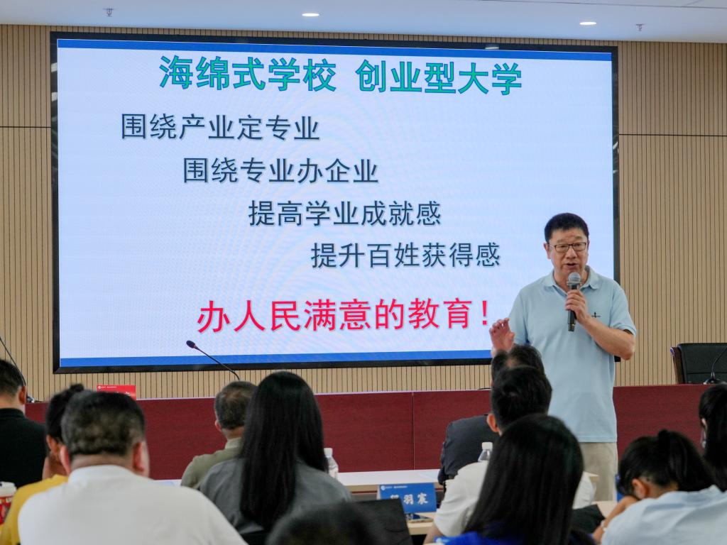 随后,曹勇安介绍了齐齐哈尔工程学院在“海绵式”学校,“创业型”大学的办学实践。他指出,这种办学模式能够有效应对未来十五年我国高等教育学位供给短期不足与长期过剩之间的结构性矛盾,实现产教融合的相互支撑与良性发展。一方面,学校通过持续改善办学条件,不断提升人才培养质量;另一方面,产业发展也持续需要人才、教育及科技的支撑,从而形成双向促进的健康发展格局。