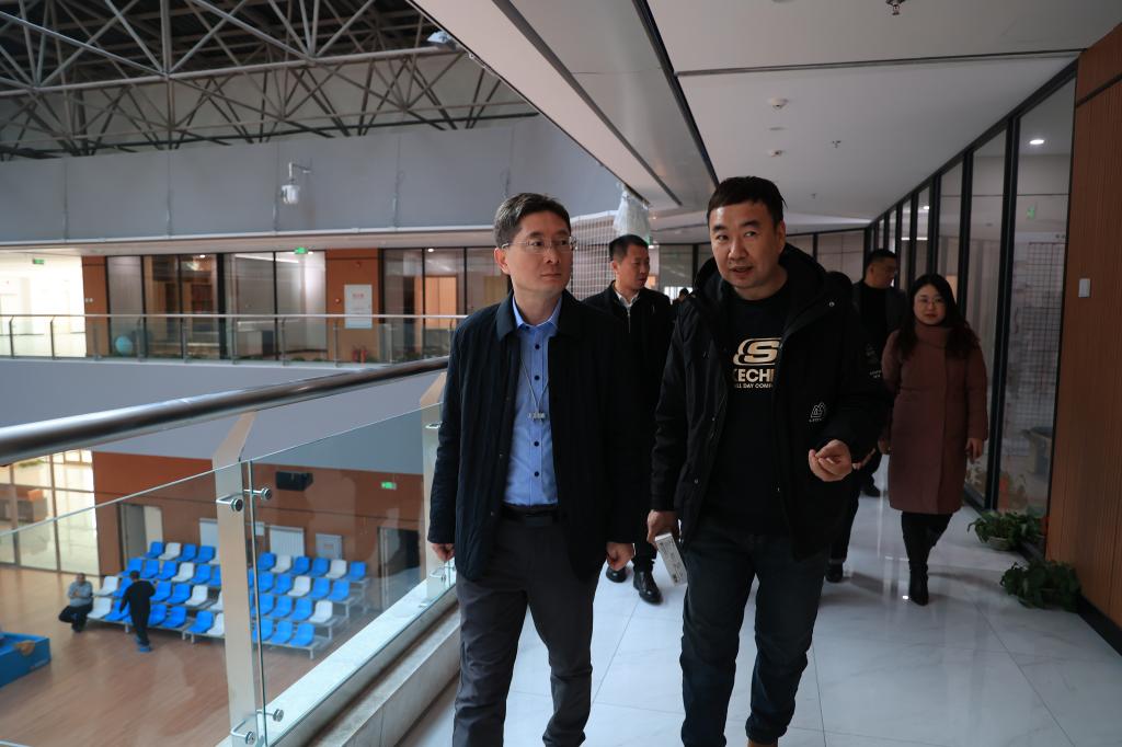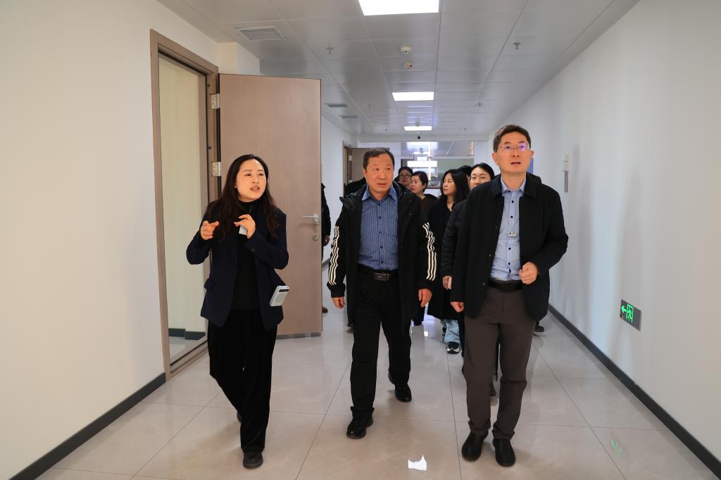 曹然彬对薛东波一行来校表示欢迎,陪同薛东波一行对学校应用型人才培养基地参观走访。曹然彬详细介绍了学校在服务教育教学方面的创新举措,着重介绍了学校产学研融合,教学做合一的教学模式。同时,还对学校精心打造的微专业,从专业的特色定位、课程设置到人才培养目标等多个维度进行了阐释,全面展示了学校在人才培养方面的多元探索与积极实践。曹然彬表示,学校致力于培养契合社会需求的高素质应用型人才,重视与行业企业深度合作。建华医院作为学校的附属医院在医疗技术与临床实践方面优势显著,期望借此次洽谈,院校强化沟通协作,实现优势互补、资源共享,携手助力医疗卫生事业发展。