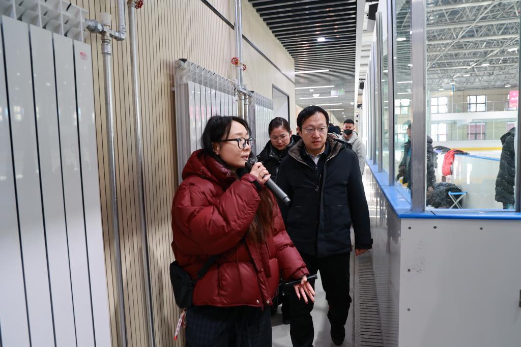 调研组一行先后对北区校园冰上运动馆、体育馆、游泳馆、外事中心、人民会堂等场馆进行了实地走访。