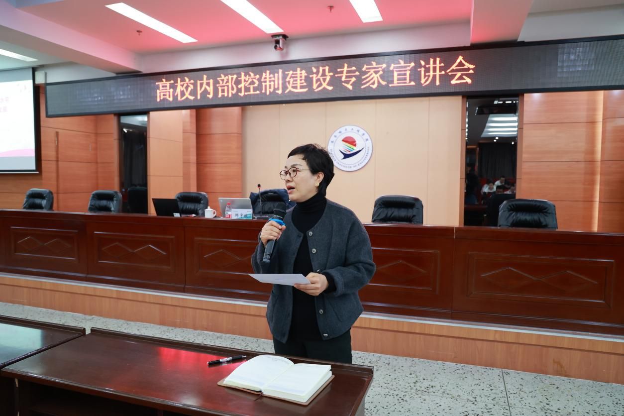 为深入贯彻落实财政部、教育部《关于进一步加强高等学校内部控制建设的指导意见》,切实提升学校内控建设意识,11月1日上午,我校特邀黑龙江农业工程职业学院财务处处长(国有资产管理办公室主任),纪委委员邱宇航开展内部控制建设专题宣讲。学校领导及全体中层干部参加学习。