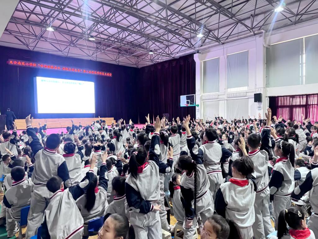 现场气氛热烈,同学们积极响应、踊跃举手参与互动,在观看自制彩虹、激光全反射等实验演示时,不时发出阵阵惊叹,沉浸式的科普体验让科学探索的乐趣深入人心,也进一步激发了孩子们对科学知识的好奇心与探索欲。