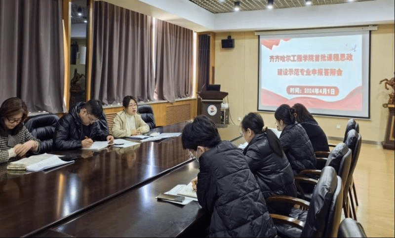为深入贯彻教育部及黑龙江省关于课程思政建设的指导精神,深化全校课程思政改革,发挥专业课程思政建设示范引领效应,齐齐哈尔工程学院课程思政教学研究示范中心决定开展首批课程思政建设示范专业申报工作。4月1日上午,在图书馆603南会议室召开了首批课程思政建设示范专业申报答辩会。副院长张静、评建办主任蒋春艳、教务处副处长李文禹、申报课程思政建设示范专业的负责人及所在部门教学副主任参加会议,会议由教务处副处长郝丽娜主持。