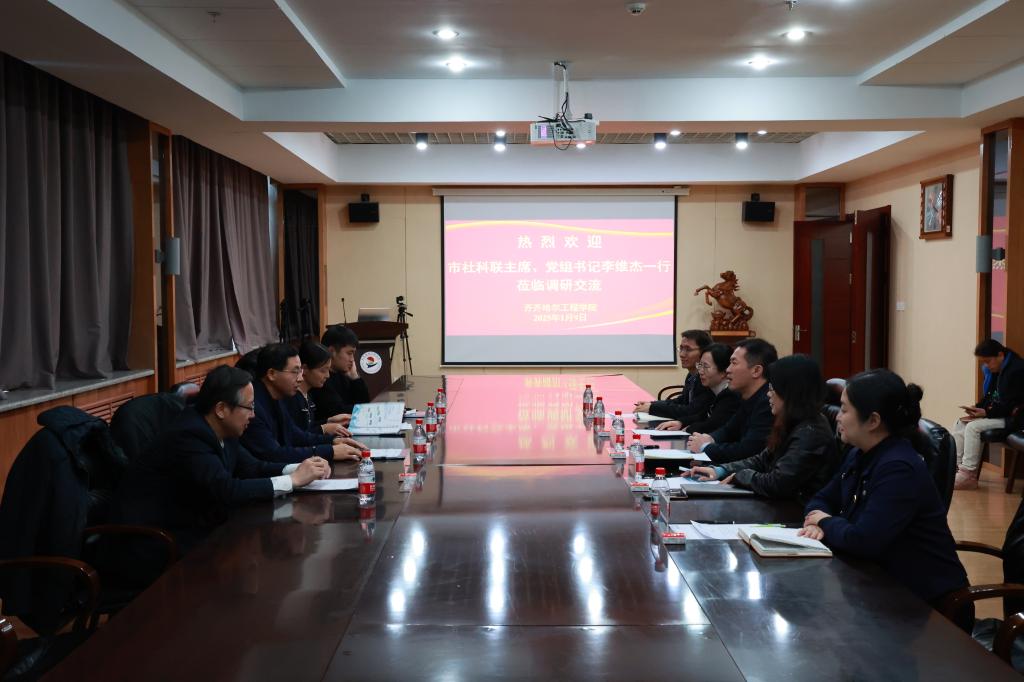 1月9日下午,齐齐哈尔市社科联主席、党组书记李维杰,副主席、党组成员王微,副主席、党组成员刘新伟、市哲学社会科学规划办周浩一行来校调研交流。学校党委书记郭伟东、副院长张静、科研处处长张平、马克思主义学院院长赵婷婷、科研处宋庆永陪同调研并参加座谈会。调研座谈会在图书馆603南会议室举行。会上,郭伟东对李维杰一行的到来表示欢迎,对市社科联对我校给予的关心、支持和帮助表示衷心感谢,并介绍了学校近年来的发...