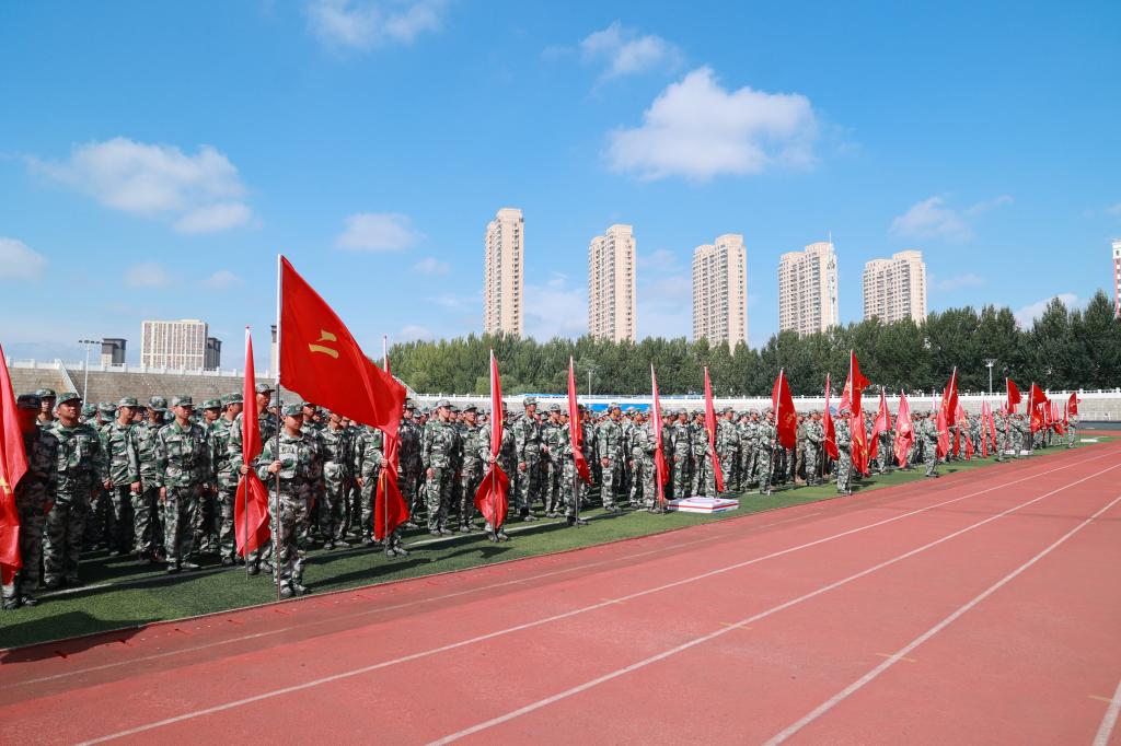 9月1日上午,学校2025级新生开学典礼暨军事技能训练开营仪式在学校体育场举行。学校党委副书记、副校长陈景鑫,龙沙区人民武装部副部长邹向华出席仪式。学生工作处处长王丽萍、副处长兼武装部部长孙晓芳,各学院院长、党委副书记,全体学长教官、参训新生及部分新生家长代表共同参加。仪式由校团委书记高士涵主持。仪式伊始,全体人员整齐列队,五星红旗伴随着雄壮的《义勇军进行曲》冉冉升起,全体人员肃立行注目礼。孙晓芳宣...