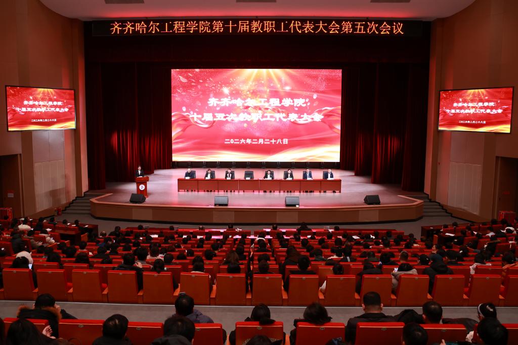2月28日,齐齐哈尔工程学院第十届教职工代表大会第五次会议在学校北区人民会堂召开。会议由学校工会副主席王丽萍主持,来自学校9个基层工会的185名教职工代表参加大会,300余名教职工列席。 在预备会议上,学校党委委员、副校长、工会主席白雪作《齐齐哈尔工程学院第十届教职工代表大会第五次会议筹备工作情况报告》,通报了出席会议的教职工代表情况,表决通过了监票人、计票人名单和大会议程。 大会在雄壮的国歌声中拉开帷幕...