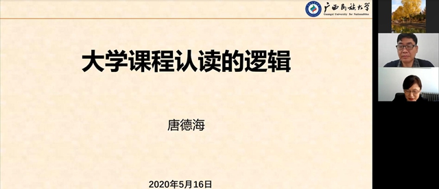 5月16日上午,第八期教学工作坊在线举行,广西民族大学唐德海教授应邀作《大学课程认读的逻辑》专题讲座。我校管理干部、教师、教辅人员等近350人参加学习,蒋春艳副院长主持此次活动。 唐德海教授从大学课程的纵向、...