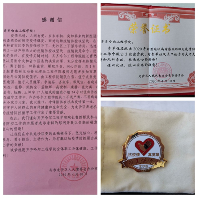 近日,齐市龙沙区人大常委会办公室给学校发来感谢信,表扬曹然彬院长和主动参加百草家园老年公寓防疫值守的17位老师,并分别颁予“抗疫情 真英雄 最美逆行者”纪念章。学校为此做出决定,奖励17位老师每人500元,鼓励...