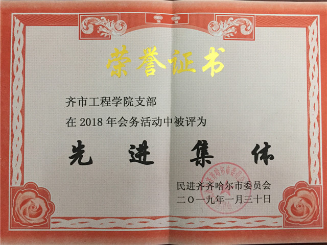 1月31日下午,在民进齐齐哈尔市委2018年度总结表彰大会上,民进齐齐哈尔工程学院支部被授予“先进集体”荣誉称号,姜岩、李亚娟、孟艳辉被授予“优秀会员”荣誉称号。【责任编辑 贺明杰】
