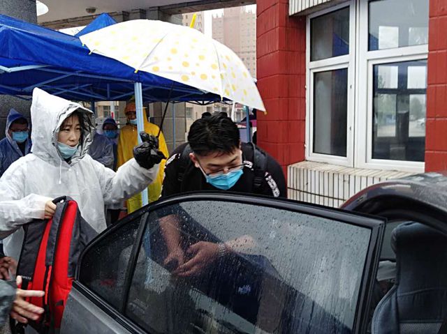 9月4日晨,受“美莎克”台风影响,鹤城有风有雨,积水满地,路上少有行人,可我校南门口早已人来人往了。校职工在这里忙碌起来,重新搭棚子,固定立柱,建围栏通道,为的是迎接第一批返校的同学们。 7点多,一名高个...