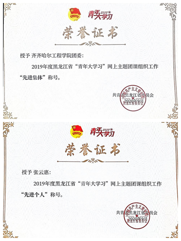 近日,团省委对“青年大学习”网上主题团课组织工作进行通报表彰,齐齐哈尔工程学院团委被评为2019年度黑龙江省“青年大学习”网上主题团课组织工作“先进集体”,团委张云惠老师被评为“先进个人”。 “青年大学习”...