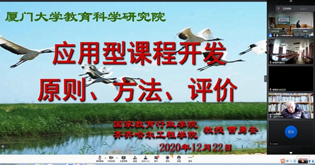 12月22日上午,理事长曹勇安教授应厦门大学邀请,在厦门大学高教讲座(第130期)作《应用型课程建设原则、方法、评价》专题讲座,讲座线上线下同时进行,200多人聆听了讲座。讲座由厦门大学教育研究院党委书记刘振天主...