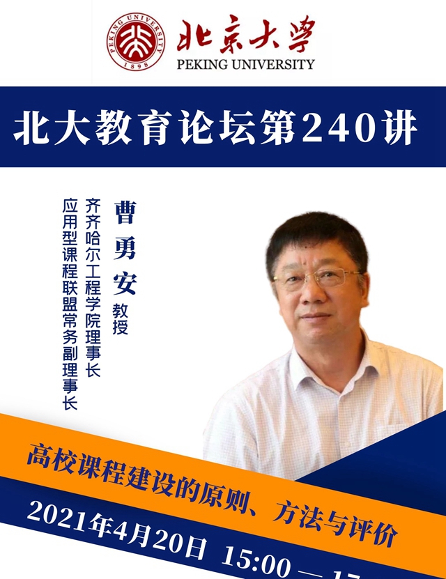 4月20日,我校理事长、应用型课程联盟常务副理事长曹勇安教授应邀在北大教育论坛第240讲作题为《高校课程建设的原则、方法与评价》专题报告。 北京大学教育学院郭建如教授主持论坛。 理事长曹勇安教授开篇就强调了...