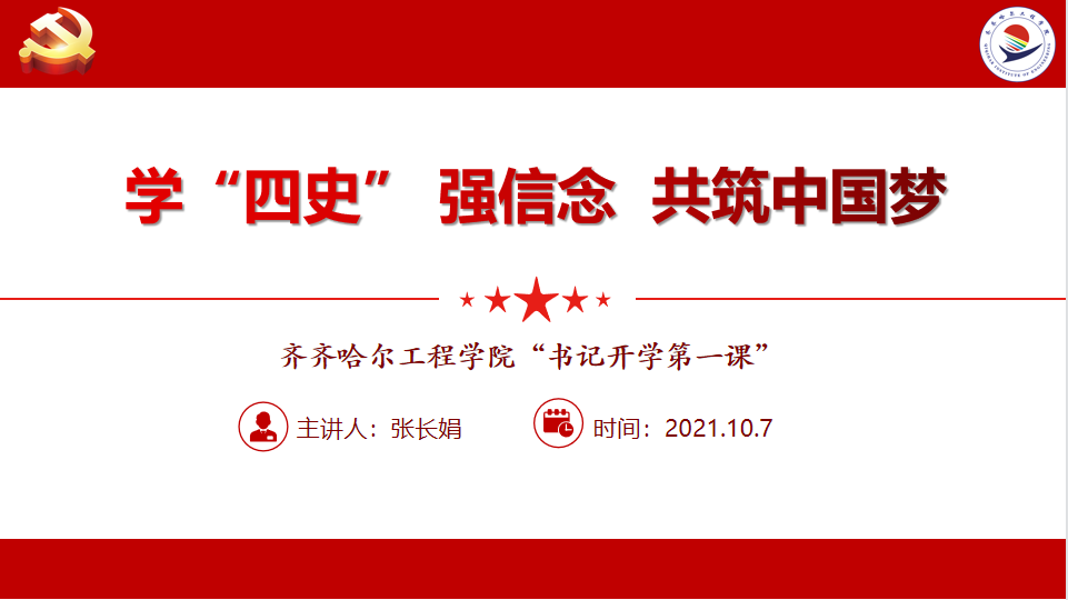 10月7日晚6点,学校举办了学习“四史”教育专题讲座。党委书记张长娟作了《学“四史”强自信 共筑中国梦》讲座。本次讲座设主会场和分会场,主会场在图书馆601报告厅,分会场在501报告厅,校级学生骨干、2021级学生骨...