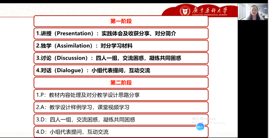 为提升教师教育教学能力,落实学校现代课程建设理念,教师发展中心于11月20日下午在二号教学区2102室,举办第十二期教学工作坊,邀请广东药科大学刘玖玲教授在线上做《对分课堂的理念与实践》专题辅导,张振笋副院长...