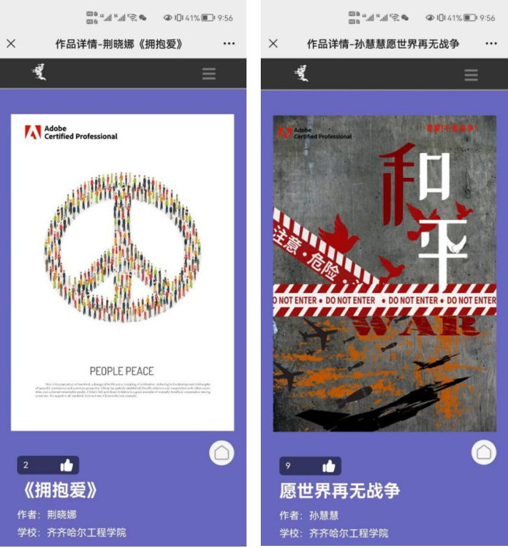 6月初,2022 Adobe Certified Professional 世界大赛中国赛区总决赛完美收官,我校视觉传达设计专业201班荆晓娜同学的作品《拥抱爱》获得最佳创意奖和最佳美术奖两项殊荣,191班孙慧慧同学获得入围奖。 Adobe Certif...