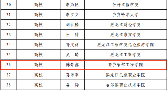 近日,2022年黑龙江省教育系统师德先进集体和先进个人评选结果公布。我校院长助理陈景鑫同志获评全省教育系统“师德先进个人”荣誉称号。 在教师节期间,我省通过发现和挖掘一批“师德高尚、治学严谨、乐于奉献”的优...