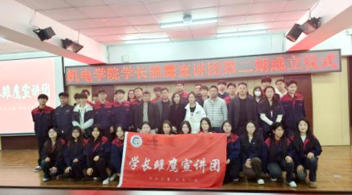 近日,机电学院“学长领航,雏鹰展翅”学长雏鹰宣讲团第二期成立仪式在图书馆501举行。仪式由学院党委副书记于海龙、辅导员王虹组织,以“高年级传经验、低年级接责任”为核心,旨在搭建学长间“互助、领航、传承”的交流平台,推动团队在代际接力中实现可持续发展。学校师生300余人参加。活动伊始,王虹详细介绍学长雏鹰宣讲团成员,对全体宣讲团成员做出期许。随后辅导员董晓亮为宣讲团发展与学长们的成长送上殷切寄语,以志...