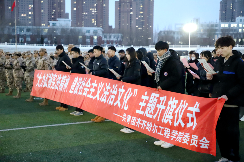 12月4日清晨,校团委在学校体育场举行“大力弘扬宪法精神,建设社会主义法治文化”主题升旗仪式。校党委副书记张振笋、学生工作处负责人王丽萍出席本次仪式,教官团及全体学生骨干共300余人参加活动。伴随着中华人民共和国国歌的奏响,教官团迈着铿锵的步伐,护送国旗走向升旗台。全体师生齐唱国歌,国旗在晨光中迎风飘扬。随后,计科231班宋喜悦、护理学234班李佳进行了诗朗诵《宪法在我心中》,呼吁当代学子要成为宪法的忠实...