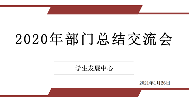 1月26日上午,学生发展中心以“肯定成绩 反思不足 谋篇布局”为主题进行工作总结和交流,认真总结2020年全年工作,徐立志、李玉焕等8位老师参加线上线下总结交流,张振笋副院长出席会议并提出要求,学生...