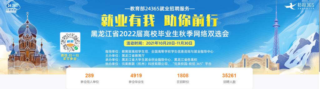 为做好2022届毕业生就业工作,学生发展中心从10月份开始,联合黑龙江省教育厅、黑龙江省大学生就业创业指导中心、龙江学子就业平台、浙江丽水、问前程大学生就业服务平台将陆续开展五场线上招聘会。此次线上招聘活动...