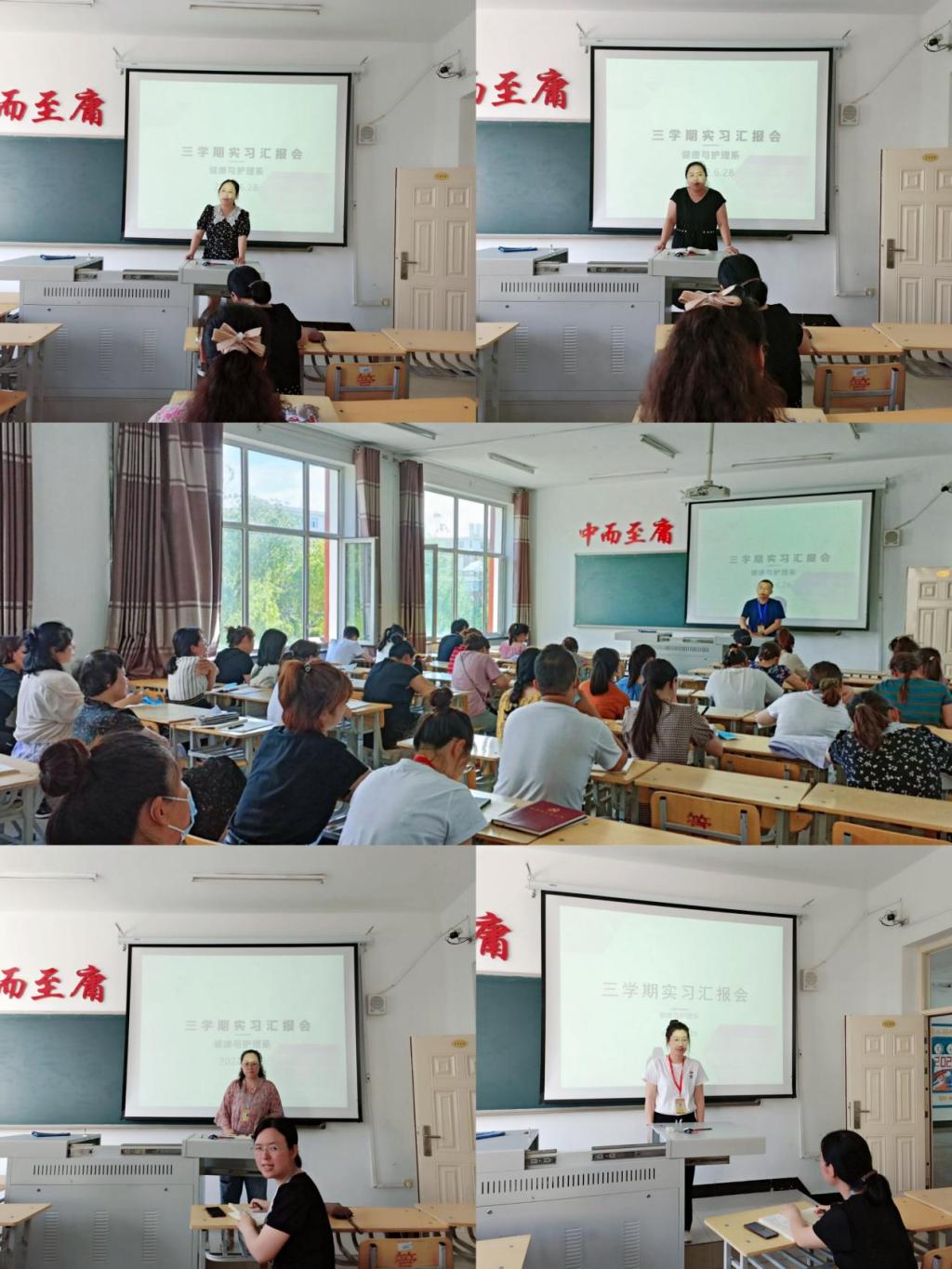 6月28日下午,健康与护理系负责人郭玲玲、教学副主任张苗及全体教师在一号教学区1213教室进行了第三学期学生实习汇报会。 汇报会是专业指导教师对学生第三学期实习情况进行阶段性总结。七位专业指导教师针对这两周实...